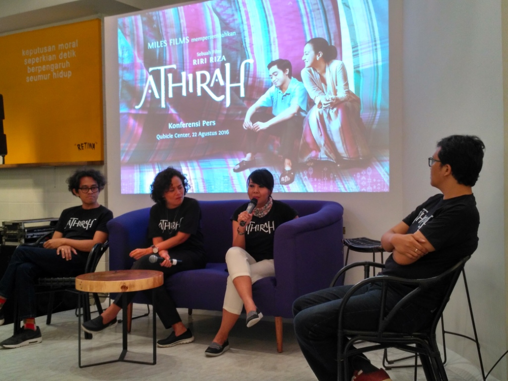 Bertempat di Senopati (22/8), Miles Films mengadakan press conference sekaligus meluncurkan ulang buku Athirah yang pada tahun 2013 sempat diterbitkan Noura Books. Tidak hanya itu, Endah N Rhesa yang mendapat kehormatan sebagai pengisi soundtrack untuk film garapan Riri Riza ini juga turut tampil melalui video klip “Ruang Bahagia” dan penampilan secara langsung. Hadir dalam film ini Riri, Mira Lesmana (produser), Salman Aristo (penulis naskah), Alberthiene Endah (penulis novel), serta para pemain, di antaranya Cut Mini, Christoffer Nelwan, Tika Bravani, dan Nino Prabowo.