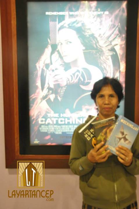 Ibu Tri yang beruntung mendapatkan 1 set novel The Hunger Games