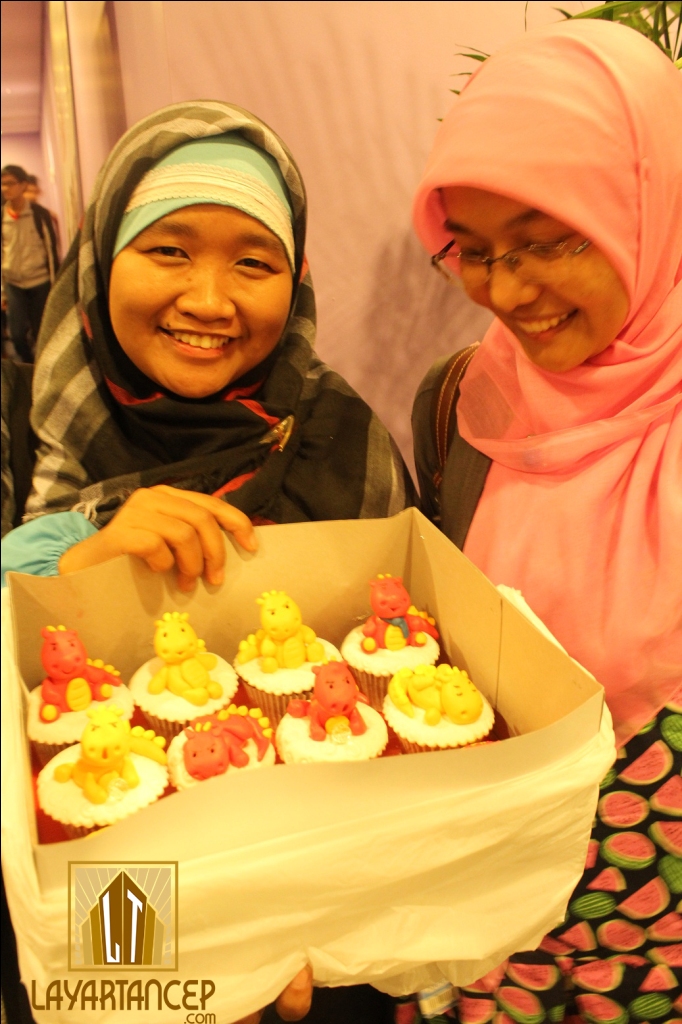 Kelar nonton, seperti biasa ada sesi foto-foto. Eh, tunggu dulu! Ternyata ada Jelata yang berulangtahun! Waaah, selamat ulang tahun Teh Anjani. Bahkan, khusus untuk nobar hari itu, doi sudah menyiapkan kejutan berupa 12 cupcake ber-topping Smaug. Lutchuuuu! Ada Smaug yang lagi tiduran, ada Smaug yang lagi menjaga Arkhenstone, bahkan karena Teh Anjani juga pencinta Benedict Cumberbatch di Sherlock ada Smaug yang pake syal ala Sherlock lho. Gemes nggak siiiih?? Para peserta yang udah dapat cupcake Smaug langsung deh berubah jadi banci foto. Segala gaya dikerahkan, mulai dari foto sama cupcake, di depan poster, tiduran, sampai ada yang kayang (eh, nggak ada deng. Itu cuma imajinasi liar mimin aja).